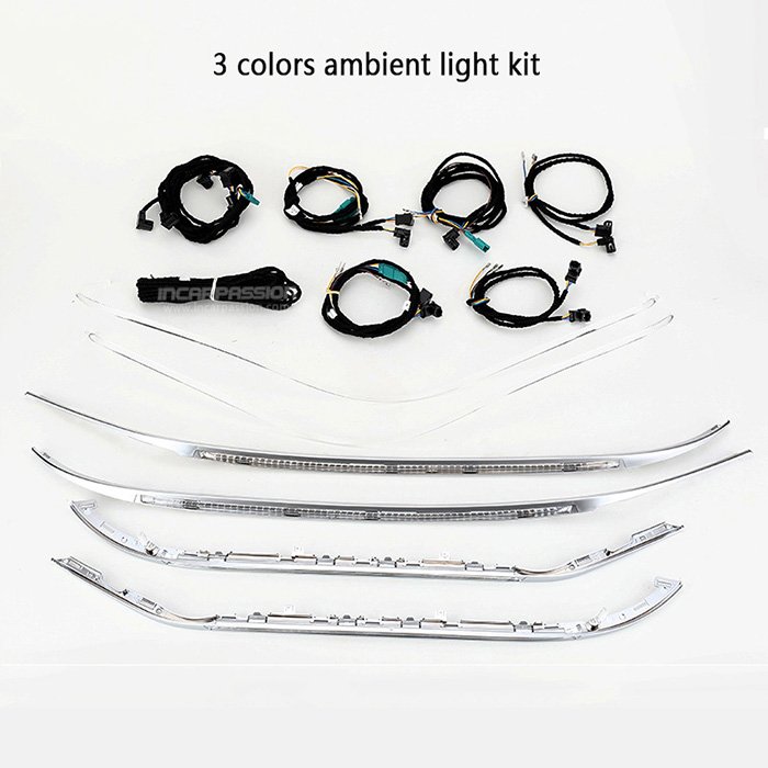 For C Class W205 and GLC with original 3 colors ambient light, can upgrade to 64 colors ambient light, just need to change the hardness kit(see below picture) then it is OK.