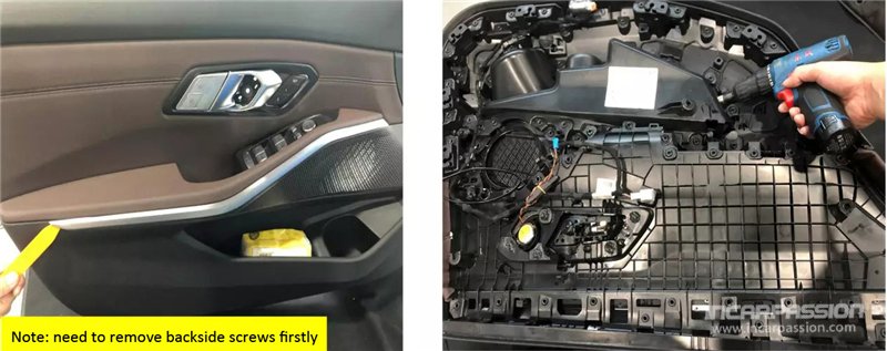 4, Remove the 2 screws fixing the door trim