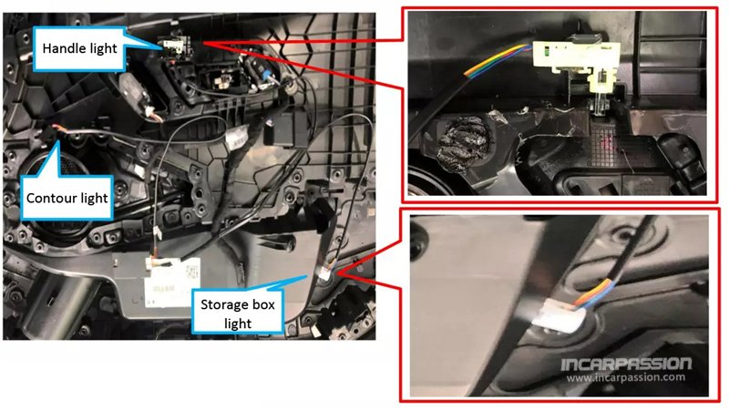 7, Install the handle light, contour light and storage box light